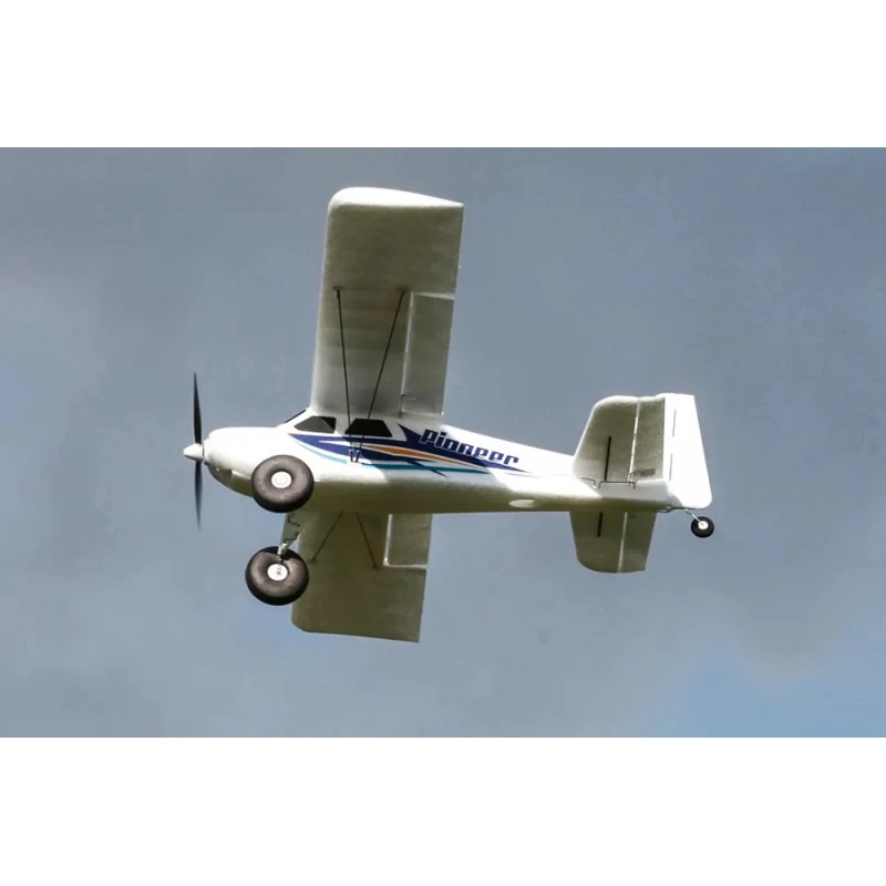 As a proper “all-rounder”, the Pioneer has a classic high-winged tail-dragger design- allowing for predictable handling characteristics. The pre-installed ESC and flight control system eliminates the need for complicated wiring harnesses and setup.