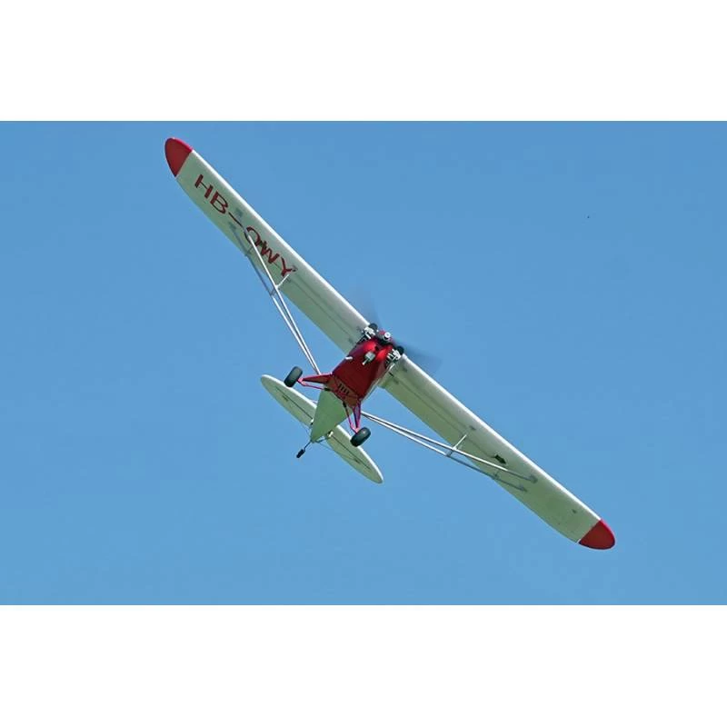 Like its full-sized counterpart, the all-new FMS 1400mm J-3 V3 has excellent short takeoff and landing (STOL) and slow speed handling characteristics. FMS has dedicated significant amount of resources in making this aircraft as detailed as possible- components such as the engine and landing gear, among many others, are replicated in detail. FMS has selected an attractive, historically accurate red paint scheme for the V3 Cub.Â