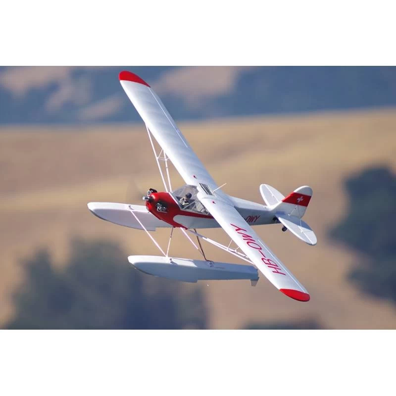 The new V2 edition of the FMS 1400mm Piper J3 is more attactive in its appearance, more importantly, it can meet the request of many customers to the greatest extent in that float is also added to the design.Â