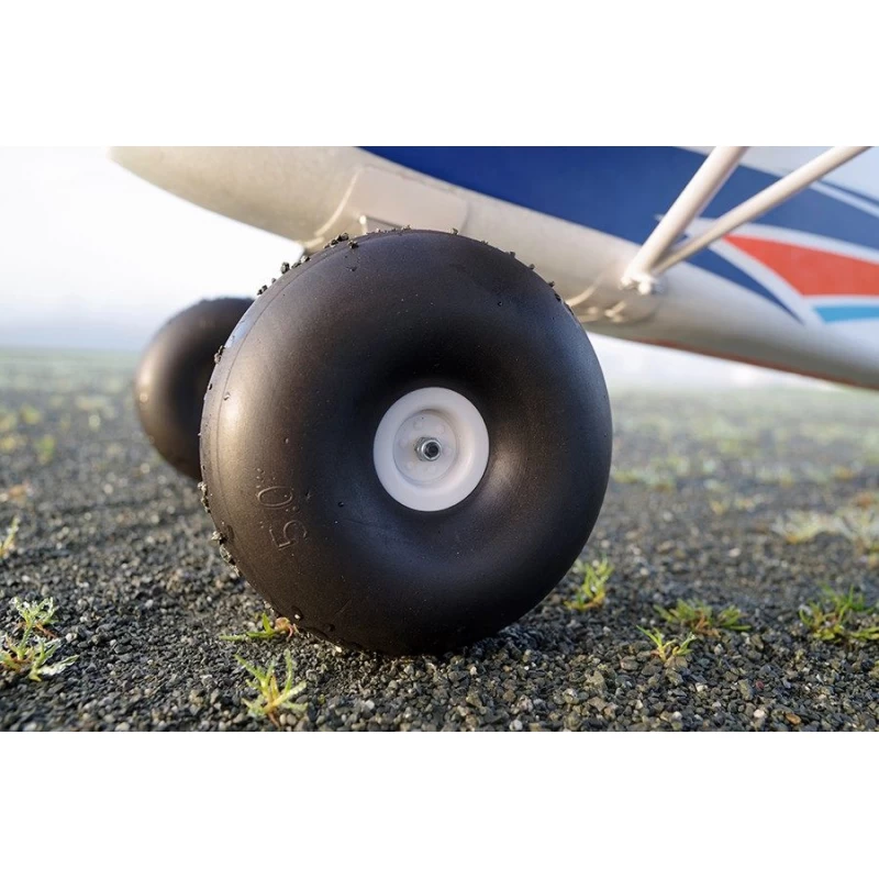 The oversized wheel set makes take-off and landing from grass fields and gravel roads very easy. Optionnal floats set and skis set (included) allows to fly from water or on the snow.