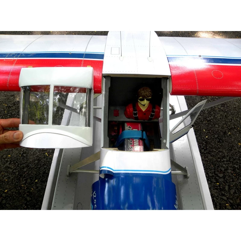 The VQ DHC-2 Beaver has been specially developed for brushless motors and features a fully removable cockpit for easy battery change. The hood locks magnetically on the fuselage. With the included large wheels, takeoffs and landings are no problem, even on grass runways. The model is also can also be adapted to sea flights or snow flights (optional floats)